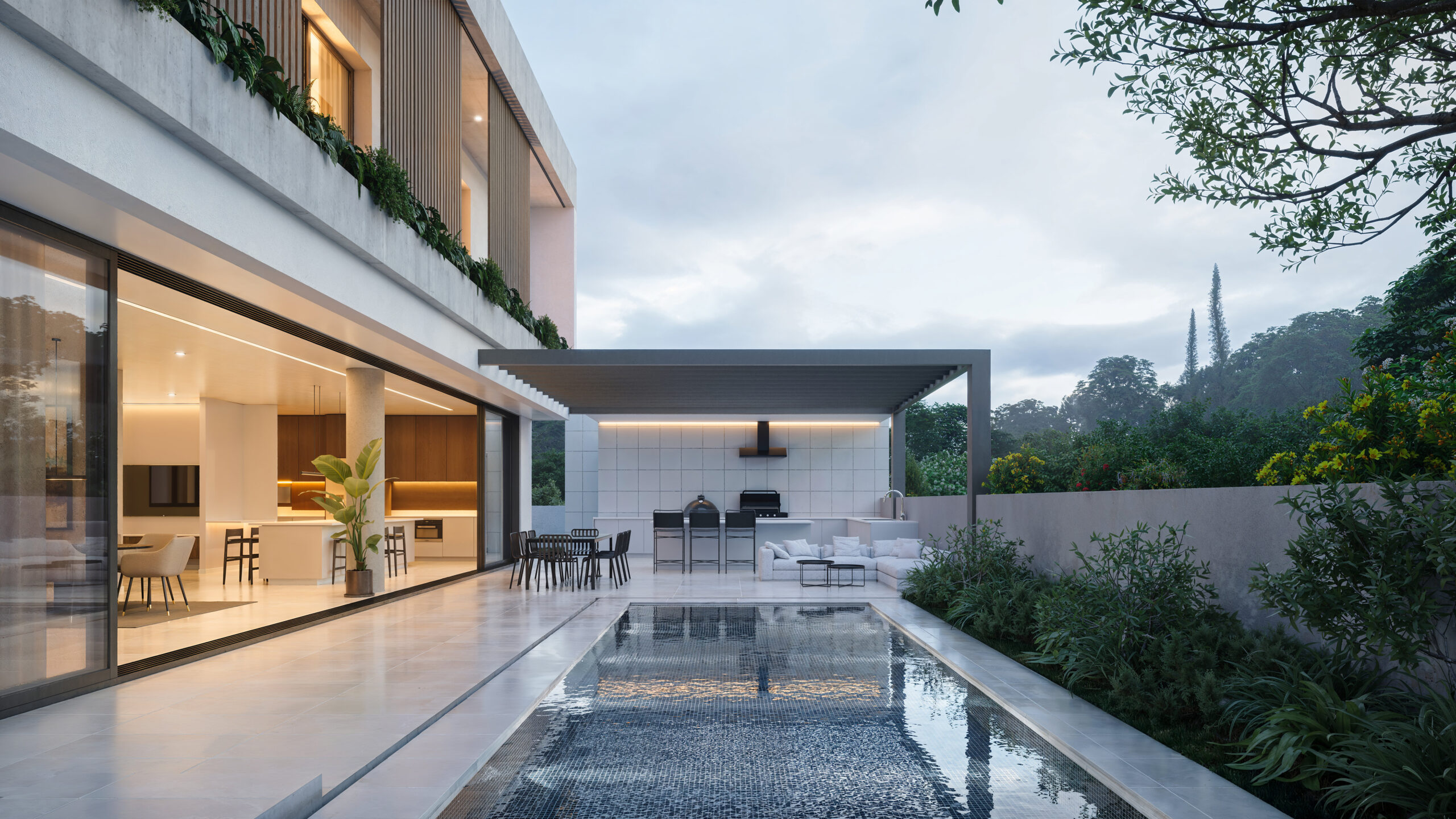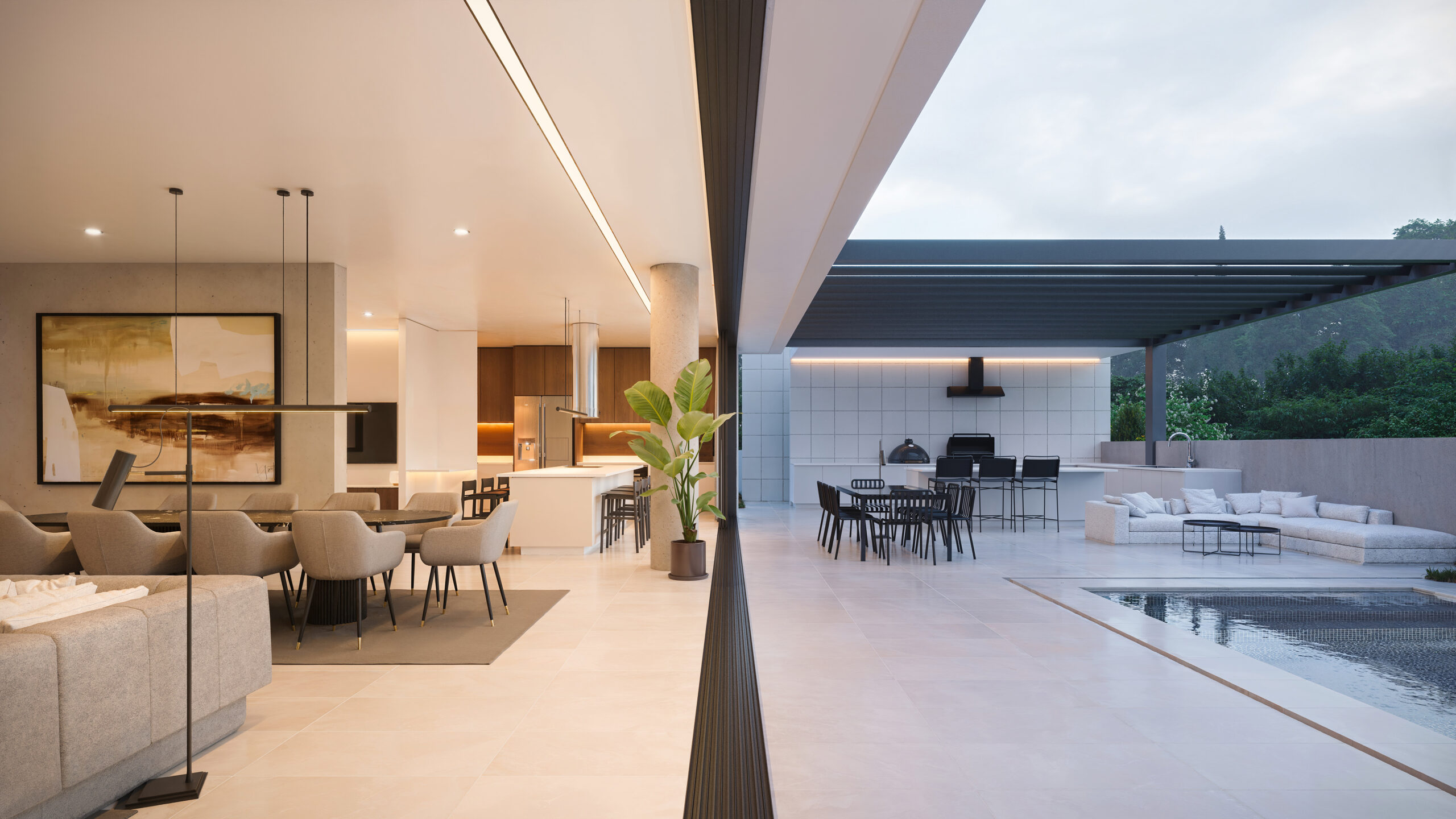 “At The Social House, the wall isn’t a barrier—it’s a gateway. We utilized oversized sliding glass systems that disappear into the structure, allowing the living room to physically merge with the poolside deck. By using the same flooring material from the kitchen to the outdoor lounge, we create a visual ‘infinity floor’ that makes the interior feel twice as large and the exterior feel like a private room.”